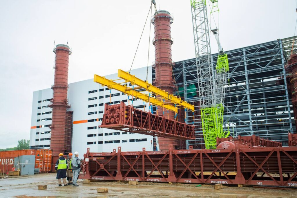 В данное время ведется монтаж оборудования ГК – четырех котлов-утилизаторов и четырех дымовых труб, монтаж рециркуляционных электрических насосов (РЭН), монтаж циркводоводов в рамках ГК, обвязка трубопроводов вспомогательного оборудования. Одновременно идут работы по устройству фундаментов вспомогательных объектов. Начаты работы по монтажу М/К секций градирни, тепло-холодного склада.