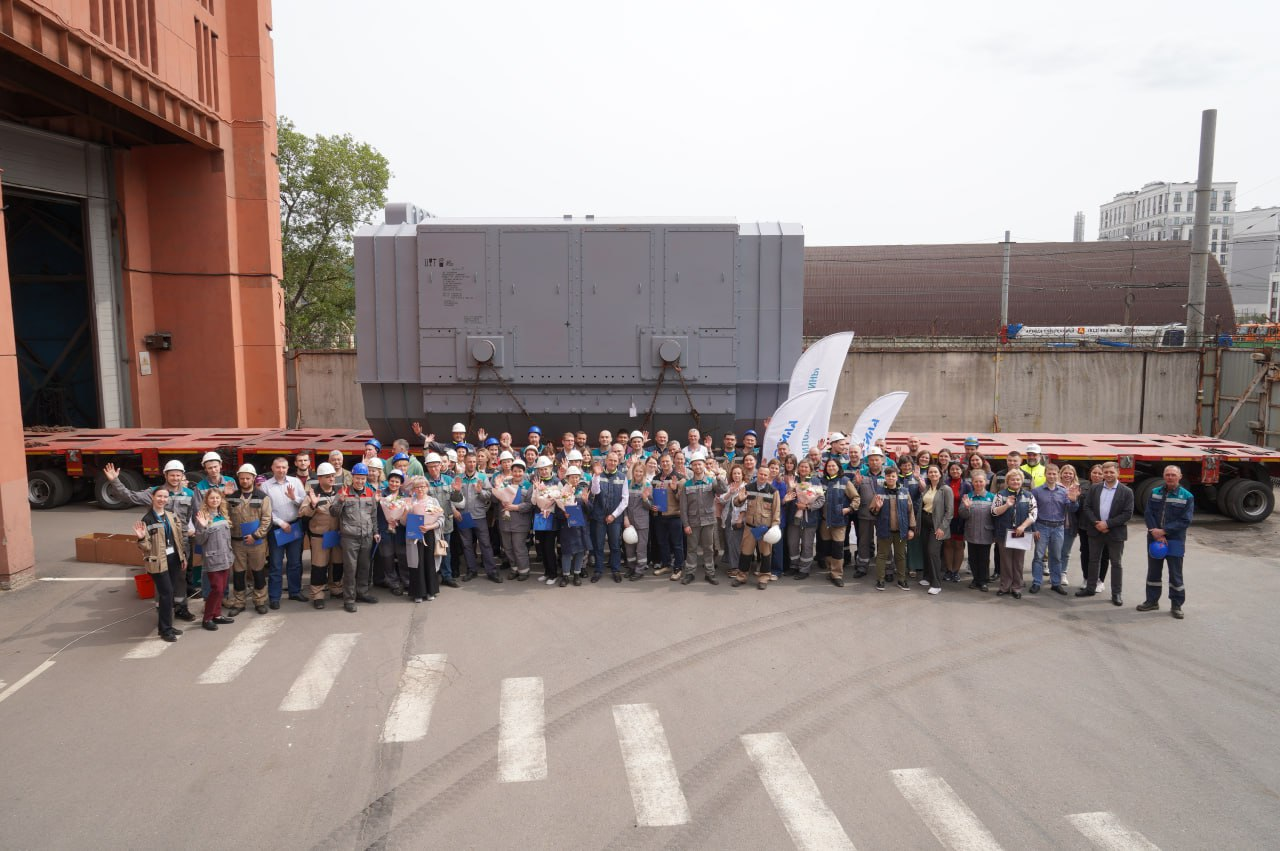 У комплекса мощных турбогенераторов прошла торжественная церемония отгрузки одной из самых долгожданных машин последних лет. В новейшей истории России это новый продукт, первый генератор с воздушным охлаждением такой мощности (350 МВт).