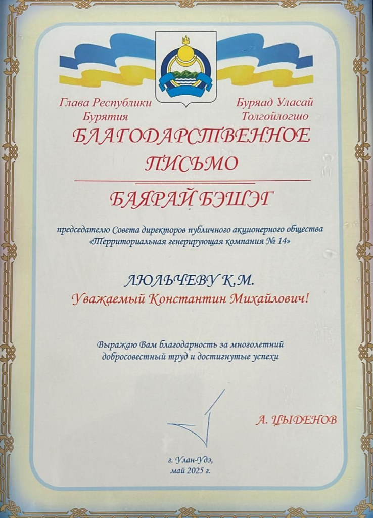 Также в ходе годового собрания акционеры утвердили годовой отчёт и годовую бухгалтерскую отчётность за 2024 год, согласовали АО «Кэпт» в качестве аудитора, скорректировали устав компании. Акционеры избрали новый совет директоров, сохранив его количественный состав – 11 человек. Внутри совета произошли изменения, из органа управления выбыли Евгений Рыбаков, Александр Николаенко, Владимир Сенкевич, Елена Кириченко (их должности не указаны). Их места заняли гендиректор «Дальневосточной управляющей компании» (ДУК, мажоритарный акционер ТГК-14) Евгений Николаев, топ-менеджер «Совкомбанка» Андрей Харченко, преподаватель бизнес-школы АМИ СПбГУ Яна Донская и гендиректор ООО «ИнтерМаш» (должность на момент выдвижения, с 5 мая машиностроительный дивизион «Интер РАО» возглавляет Александр Таничев), председатель совета директоров Уральского турбинного завода Михаил Лифшиц.