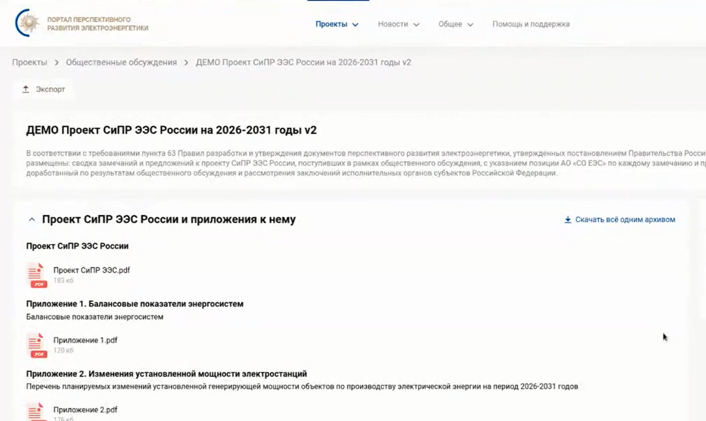 Уже сегодня портал открывает доступ информации в сфере планирования перспективного развития отрасли, включая действующие Генсхему и СиПР ЭЭС России на 2025–2030 годы, исходную информацию для разработки СиПР ЭЭС, данные для проектирования, обосновывающие материалы и отчеты о реализации СиПР ЭЭС России, сводки замечаний и предложений к проектам программных документов, нормативную базу по планированию развития электроэнергетики. Объем информации на портале регулярно расширяется.