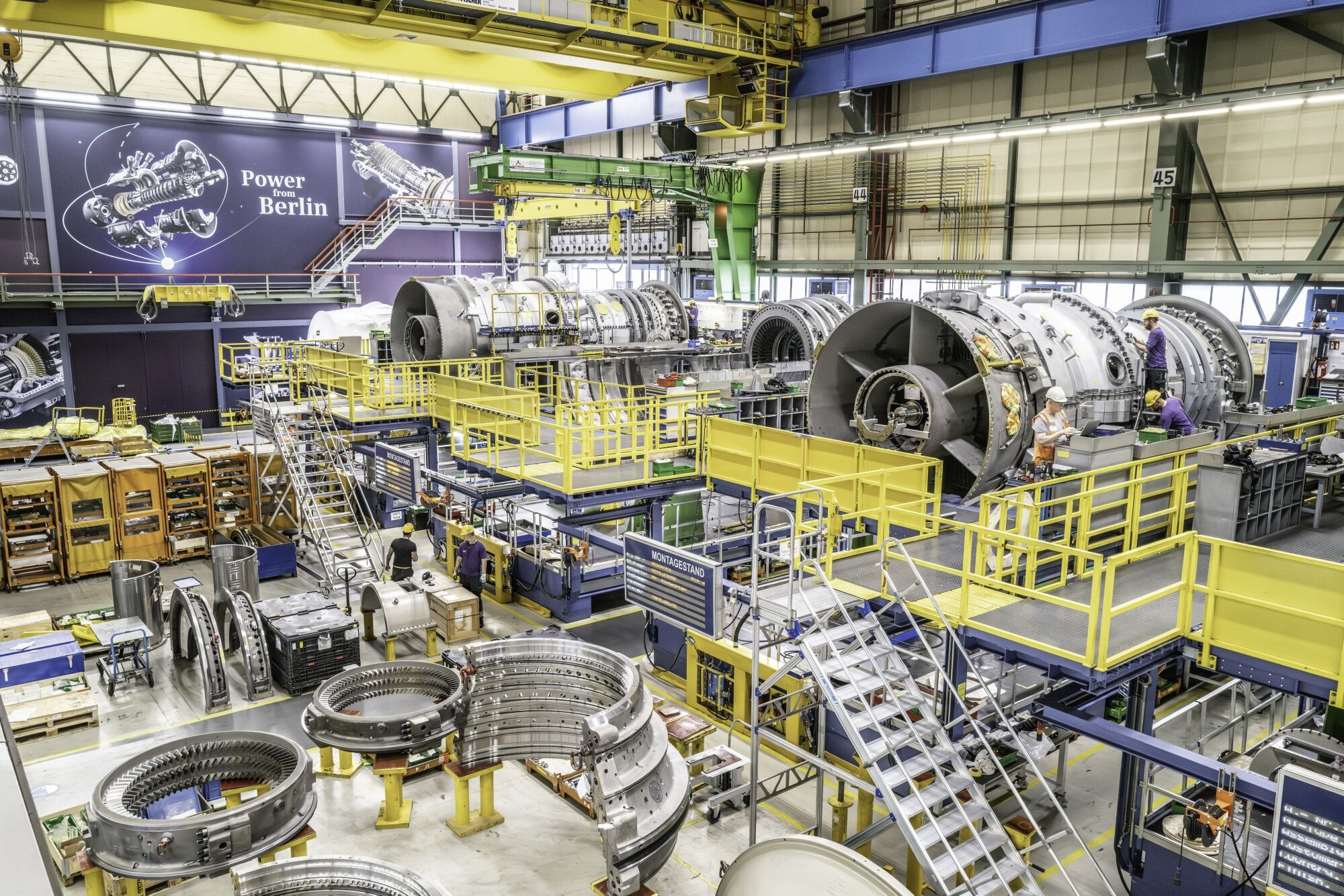 Зона окончательной сборки производства газовых турбин на заводе Siemens Energy в Берлине.