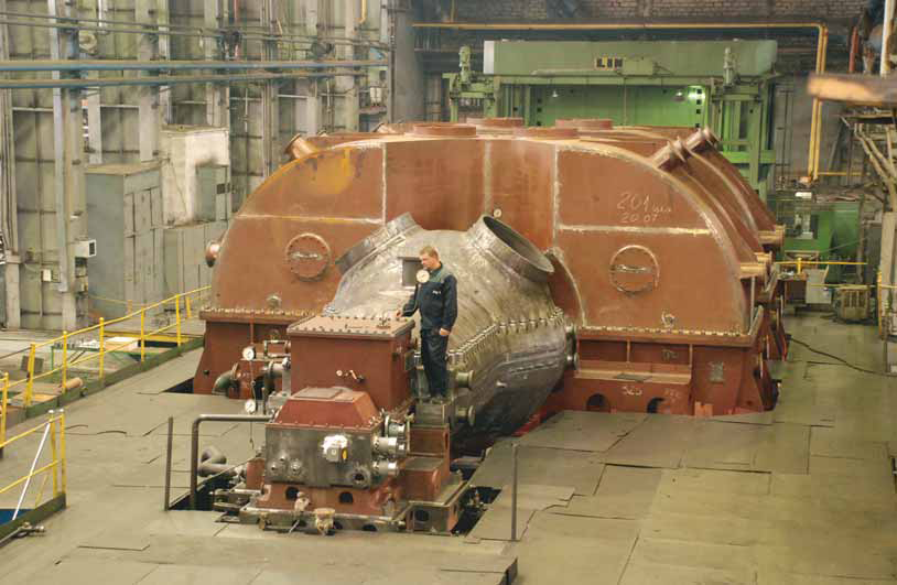 В соответствии с условиями договора генерального подряда, заключённого с ОАО «ВО «Технопромэкспорт», наша компания обеспечивает изготовление и поставку энергооборудования для паровой части строящейся ПГУ Уренгойской ГРЭС: это паровая турбина K-160-7,5 и турбогенератор Т3ФП мощностью 160 МВт. Последний вместе с системой возбуждения был изготовлен на «Электросиле» весной 2011 года с опережением договорных сроков. Работа над турбиной шла в цехах на головной площадке ЛМЗ и в ПК «Завод «Турбоатомгаз» в течение нескольких месяцев, однако основные объёмы пришлись на лето. В реализации заказа участвовали 28-й цех, изготовивший два ротора – высокого и низкого давления, 133-й цех ТАГа, выполнивший работы по цилиндру низкого давления, а также 201-й цех, где изготовлены несколько узлов уренгойской машины.