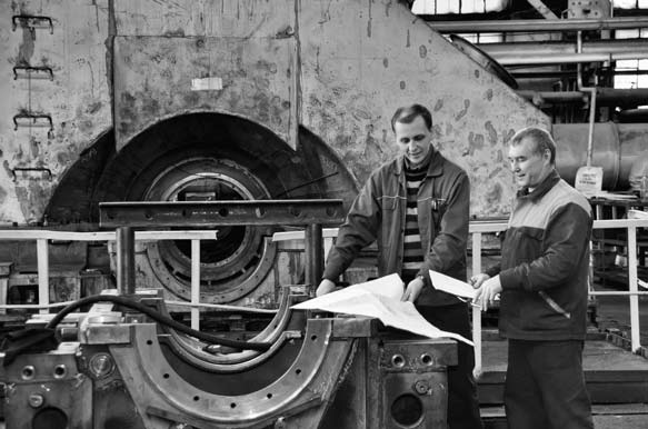 — У нас все работают добросовестно и с полной отдачей. Но конечно, хочется назвать самых выдающихся, их должны знать. Это: В.И. Шалагин, токарь-карусельщик, он работает на уникальном 9-метровом карусельном станке, Почетный турбомоторостроитель; это С.А. Порозов, работает на Шкоде, является отличником качества, имеет личное клеймо; А.М. Зобнин, работает на участке окончательного статора, тоже отличник качества. Это В.А. Дубов, токарь-расточник 6-го разряда, высококвалифицированный специалист, отличник качества, удостоен званий «Лучший рабочий», «Победитель соц.соревнования», в 2010 г. его портрет помещен на заводскую Доску почета, он сейчас на больничном, и нам его очень не хватает. Это А.В. Морозова, бригадир крановой группы, грамотно и профессионально руководит бригадой. Вообще, по крановой группе никогда нет никаких претензий, все молодцы, а ведь там, в основном, женщины. Самый большой производственный стаж в нашем цехе имеет В.П. Гаранжа. Это всё кадровые работники, имеющие большой производственный стаж, можно сказать патриоты своего цеха и завода. Это через их руки проходят все турбины выпускаемые на предприятии. Из молодых, я бы отметил А. Хлебникова, его стаж на заводе всего 3 года, но он специалист своего дела и уже наставник. Мы планируем обучить его на модернизированный станок Шкода. Есть у нас замечательный наставник В. Лобашов, его ученик Дорохов довольно быстро освоил специальность, и сейчас работает самостоятельно.