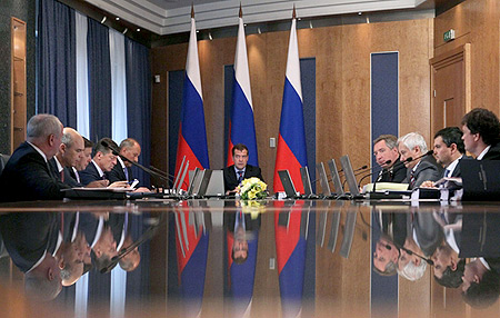 В ходе посещения Внешэкономбанка состоялась беседа Д.А.Медведева с главой ВЭБа В.А.Дмитриевым.