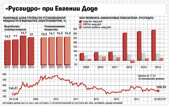 За время работы в «Русгидро» у Дода были и достижения, и провалы (см. врез). Видимо, руководитель «Русгидро» в самом деле не думал, что его могут отправить в отставку. Год назад в интервью «Интерфаксу» Евгений Дод рассказывал о планах: «Я думаю, что уже в конце 2015 г. мы будем открывать наш новый офис во Владивостоке. Мы уже выбрали место. Мы согласовали улучшение и увеличение этого здания. Примерно года полтора займут реконструкция и ремонт». Он говорил, что во Владивостоке будут находиться основные подразделения группы «Русгидро», включая ОАО «РАО ЭС Востока», и строил много других планов, которым теперь не суждено сбыться. Вскоре Евгений Дод покинет «Русгидро». По одной из версий источников «Ведомостей», он лишился покровительства Игоря Сечина, не поддержав его идею проведения допэмиссии акций «Русгидро» в пользу «Роснефтегаза».