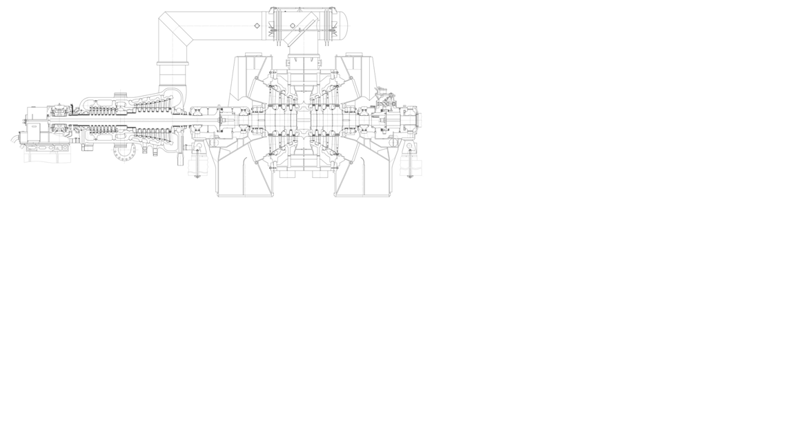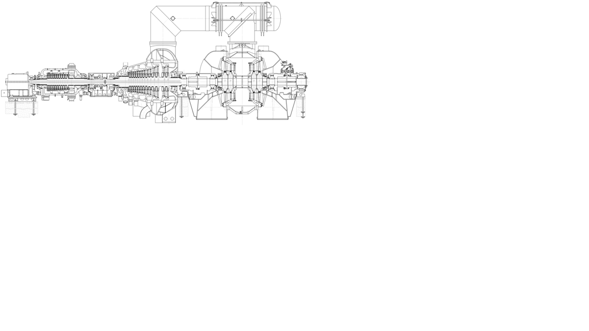 - Класс А.3: одноцилиндровые турбины с петлевой схемой движения пара, с внутренним цилиндром с межкорпусным пространством. Межкорпусное пространство может использоваться, как для подвода пара (например для использования в ПГУ), так и для осуществления отбора пара (например на регенерацию или производственный отбор). Мощность от 40 до 100 МВт, давление свежего пара от 60 до 130 кгс/см2, лопатка последней ступени может быть применена от 432 до 660 мм, регулирование дроссельное с выносным блоком клапанов, либо сопловое с размещение регулирующих клапанов на цилиндре. Возможность установки регулируемого теплофикационного одноступенчатого отбора мощностью от 50 до 190