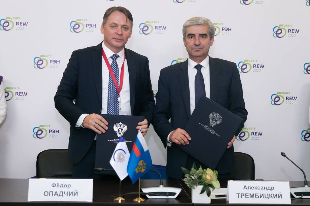 13 октября в Москве в рамках форума «Российская энергетическая неделя» Председатель Правления АО «СО ЕЭС» Федор Опадчий и руководитель Федеральной службы по экологическому, технологическому и атомному надзору (Ростехнадзор) Александр Трембицкий подписали соглашение об информационном взаимодействии, направленное на повышение надежности функционирования энергосистемы и снижение аварийности в электроэнергетике.