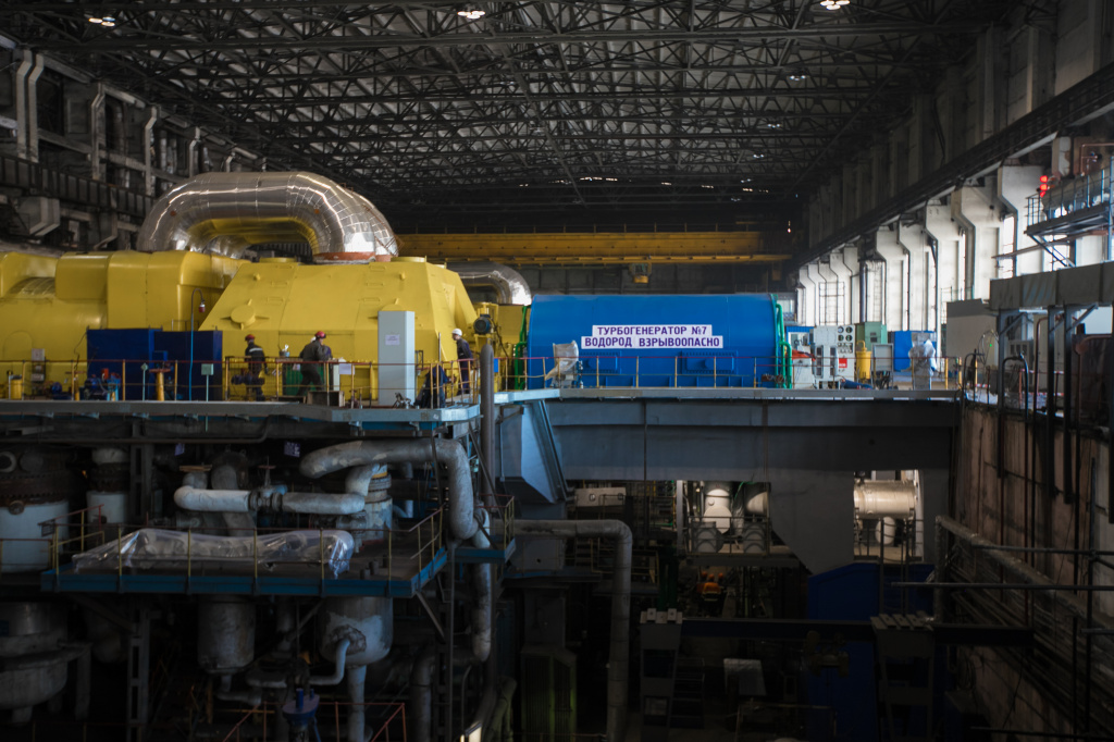 Турбина на энергоблоке №7 также прошла капитальный ремонт, собрана в единое целое с генератором — оборудование закрыто защитными кожухами. А вот на двух корпусах котлагрегата №12, А и Б (входит в состав энергоблока №7), работы ещё продолжаются, хотя тоже на финальной стадии.