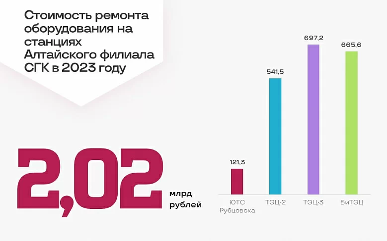 Стоимость ремонтной программы на четырех станциях в Алтайском крае в 2023 году превысит 2 млрд рублей. Эти средства направят на текущий и капитальный ремонты котельного и турбинного оборудования. Наибольший объем средств — 697,2 млн рублей — будет израсходован на обновление оборудования Барнаульской ТЭЦ-3.