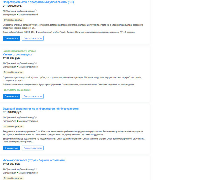 Уральский турбинный завод (УТЗ, входит в группу РОТЕК), где производят, в том числе, турбины для кораблей с атомной энергоустановкой, за месяц выложил 58 объявлений о поиске сотрудников. Вакансии опубликованы на сайте Head Hunter. Председатель совета директоров УТЗ Михаил Лифшиц пояснил URA.RU, что есть две причины, почему на предприятие массово ищут сотрудников.