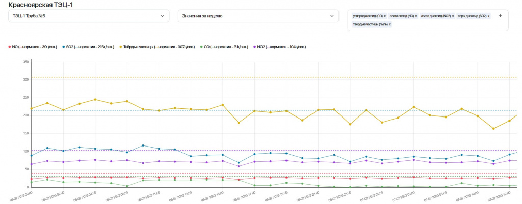 Система мониторинга выстраивает графики по усредненным двадцатиминутным значениям замеров по пяти веществам: оксидам и диоксидам азота, диоксидам серы, угарному газу и твердым частицам PM 2.5 и 10. Контроль экологических параметров работы ТЭЦ-1 доступен для всех желающих на официальном сайте СГК.