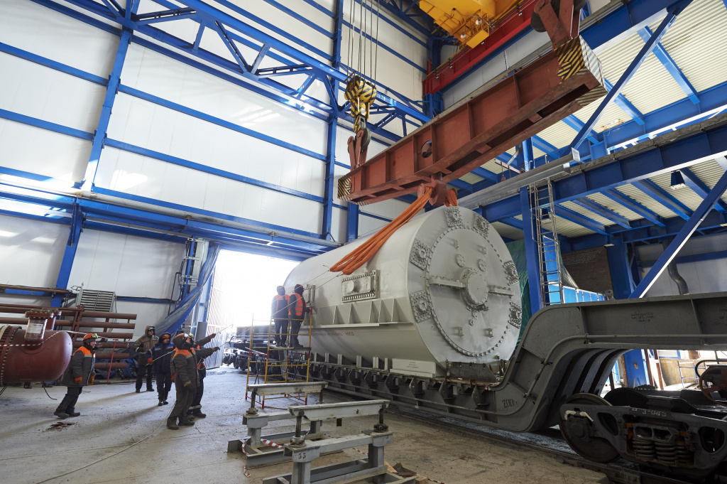 Статор генератора массой в 191 тонну изготовлен на Новосибирском заводе «ЭЛСИБ». Он был в пути более трех недель — для перевозки негабаритного груза требовалось найти окна в железнодорожном расписании.