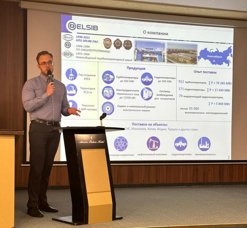 Научно-производственное объединение «ЭЛСИБ» представил Дмитрий Томилов, специалист по продажам, выступив с докладом «Новые разработки турбогенераторов класса 165…315 МВт для паровых и газовых турбин».