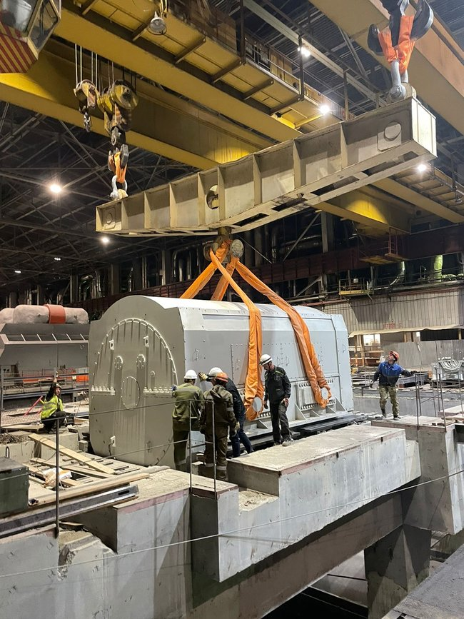 В подъеме и монтаже статора на фундамент были задействованы 2 станционных 80-тонных крана, весь процесс занял более 9 часов. Также начат монтаж среднего стула турбины. Продолжается сборка оборудования котлоагрегата, работы уже выполнены более чем на 35 %. Ведется монтаж вспомогательных трубопроводов. Завершены работы по установке нового трансформатора энергоблока.