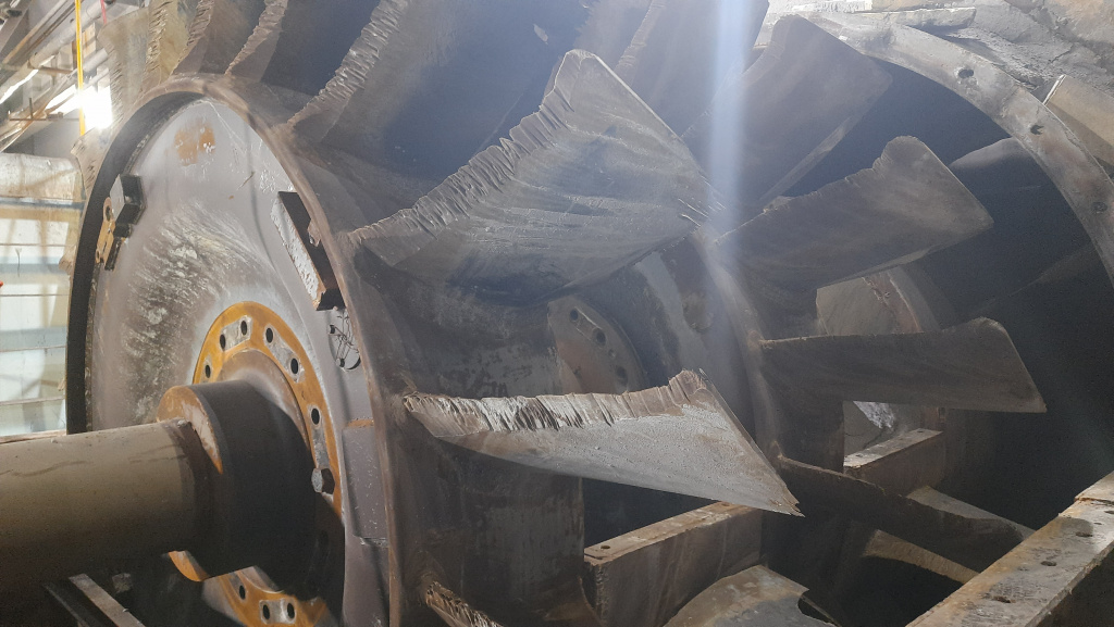 На котлоагрегате блока №2 специалисты «СибЭР» вскрыли дымососы и произвели выемку ходовой части. В потоке уходящего газа присутствуют твердые частицы золы размером от 1 до 3 миллиметров. Такие частицы золы вместе с большой скоростью потока приводят к повреждению проточной части дымососа, особенно лопаточной части.