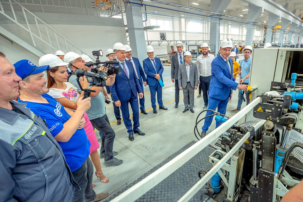 7 августа Андрей Травников в торжественной обстановке нажатием кнопки управления гидравлического формообразующего станка дал старт работе нового производственного участка катушечной обмотки электродвигателей.