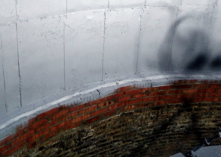 Теперь вместо морально и физически устаревшей кирпичной кладки ствола теплоизоляция выполнена из полимерцементного керамзитобетона с нанесением специализированного состава системы «ГЭКОС», который защищает монолитную футеровку от вредного воздействия дымовых газов. Кроме того, на половине дымовой трубы произведена армированная футеровка, что увеличивает прочность ствола трубы.