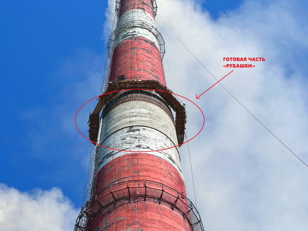 В 2024 году работы по замене внутренней футеровки будут завершены полностью — от самого основания трубы с отметки 6 метров до отметки 17,5 метров. Защиту ствола возьмет на себя армированная монолитная полимерцементная керамзитобетонная футеровка.