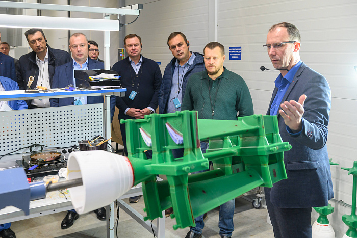 Участники совещания посетили новый производственный участок газотермического напыления теплозащитных покрытий на рабочие и направляющие лопатки газовых турбин, а также производство литых лопаток, где внедрена критически важная технология изготовления отливок лопаток газовых турбин. Буквально на днях здесь выпустили первую отливку рабочей лопатки газовой турбины ГТЭ-65 – одной из самых сложных в проектировании и производстве деталей, что стало важным этапом проекта.