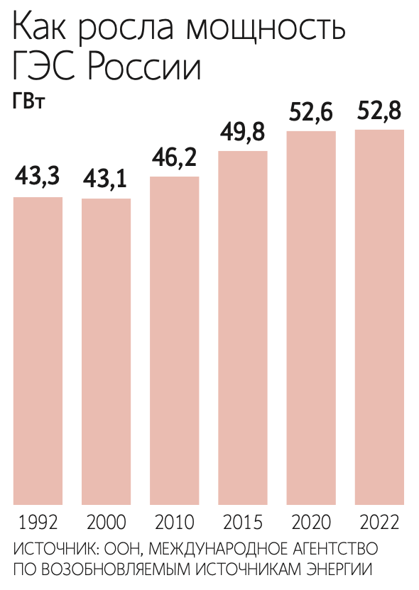 Эксперт Института развития технологий ТЭК Кирилл Родионов добавляет, что из-за высокой капиталоемкости развитые страны практически перестали строить новые ГЭС. По данным IRENA, на долю ЕС пришлось 2% (6,3 ГВт) прироста глобальной мощности ГЭС в 2013–2022 гг., Северной Америки – 4% (11,2 ГВт), указывает Родионов. Больше половины новой гидрогенерации в мире, по его словам, было введено в этот период в Китае, 14% – в других странах Азии, еще 4% – в Африке, где гидроэнергетические проекты «зачастую реализуются с привлечением китайских подрядчиков и инвестиций». Де-факто ГЭС – это «нерыночная отрасль», в которой крупные проекты невозможны без господдержки или привлечения внешних квазигосударственных инвесторов, резюмирует Родионов.