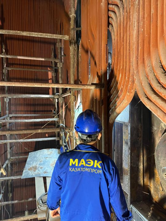 Согласно графику с 5 апреля т.г. котлоагрегат №4 ТЭЦ-2 находится в капитальном ремонте. Ремонт обмуровки и изоляции котлоагрегата выполняется силами подрядной организации ТОО «Шамота». Работы по капитальному ремонту самого котлоагрегата и вспомогательного оборудования выполняются силами ремонтного подразделения ТОО «МАЭК». На момент посещения станции установлено, что ведутся работы по ремонту поверхностей нагрева, барабана, горелок и тяго-дутьевых механизмов котла. Всего в ремонтных работах задействовано 75 человек. Капитальный ремонт котла планируются завершить 30 июня текущего года.