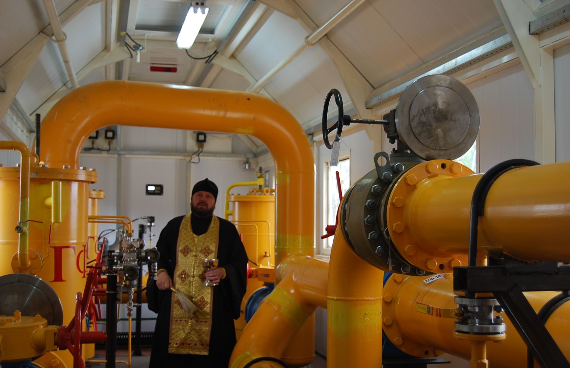 Сегодня в помещении переходной галереи от станции к газораспределительным пунктам настоятель храма Александра Невского протоирей Василий Гончар отслужил молебен по случаю начала пуско-наладочных работ по сжиганию природного газа на котле № 3 Камчатской ТЭЦ-2.