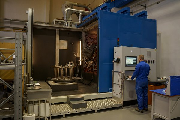 Обработка стяжек по технологии, разработанной технологической службой Невского завода, была выполнена на роботизированной установке дробеструйного упрочнения «Рослер», применяемой для аналогичных операций на лопатках осевого компрессора. Анализ полученных результатов подтвердил получение заданных свойств на готовом изделии, а именно однородность покрытия и упрочнения на необходимую глубину с созданием сжимающих напряжений.