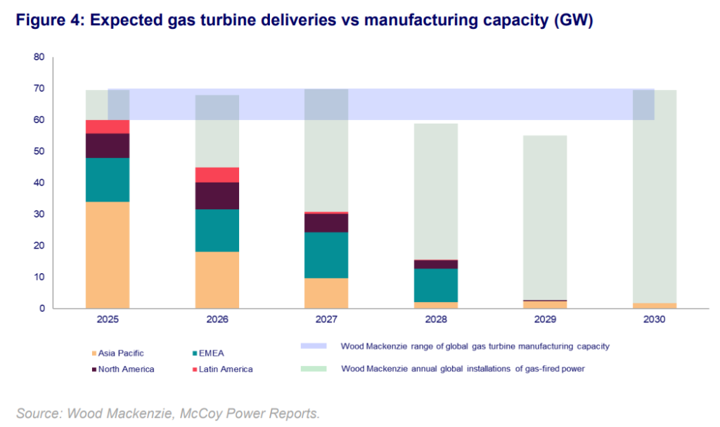 Согласно новому отчёту Wood Mackenzie, несмотря на растущий спрос на электроэнергию, в ближайшие 15 лет на рынке газовых турбин может наблюдаться «турболаг» из-за производственных ограничений, роста затрат и конкуренции со стороны возобновляемых источников энергии.