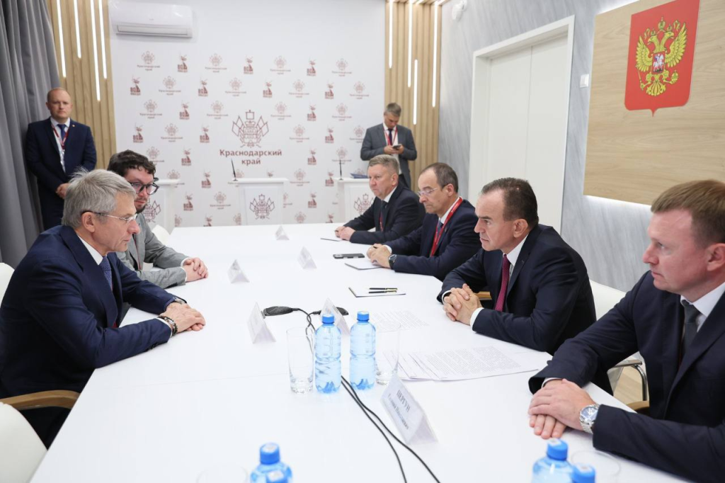 На ПМЭФ-2025 губернатор Краснодарского края Вениамин Кондратьев, генеральный директор Внешнеэкономического объединения «Технопромэкспорт» Александр Пронин и глава Крымского района Сергей Лесь подписали протокол о намерениях по взаимодействию в сфере инвестиций. Участниками встречи также стали вице-губернатор Евгений Пергун, представители профильных ведомств и компании-инвестора.
